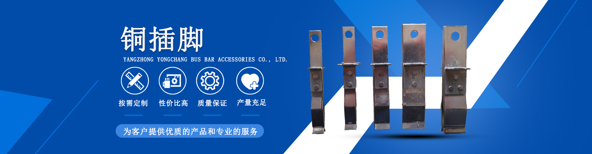 揚中市永昌母線配件有限公司專業(yè)生產(chǎn)銷售母線、橋架配件及其它電氣配套附件。產(chǎn)品系列全、產(chǎn)業(yè)鏈完整。公司現(xiàn)主要生產(chǎn)各種型號母線槽絕緣配件、母線快速連接器、母線接頭器、絕緣支架、絕緣隔板、母線插口、母線插座、母線槽銅插腳、絕緣螺栓、熱縮套管、橋架配件、橋架扣鎖、母線槽同插腳、母線槽接頭器、母線槽隔相塊等,品種齊全,交貨及時!